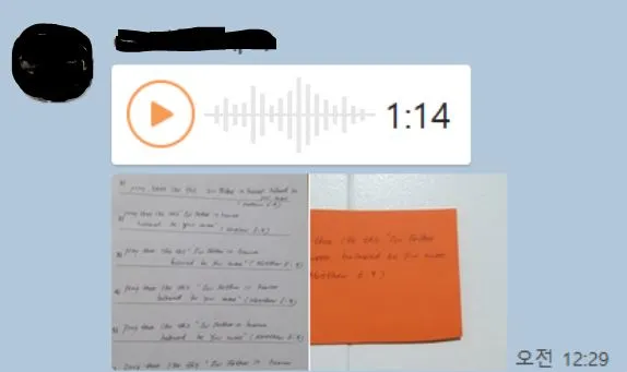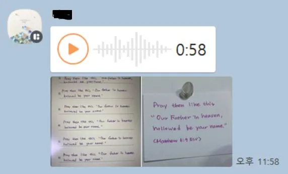 주부(44): 트레이너님과 함께 여러 차례 반복해서 선포하는 것도, 필사하는 것도, 녹음하는 것도, 관련 구절을 같이 읽는 것도 참 좋았습니다. 청크별로 나눠주신 거나 개별 단어 보다 청크 단위의 의미를 알려주신 것이 특히 좋았습니다.